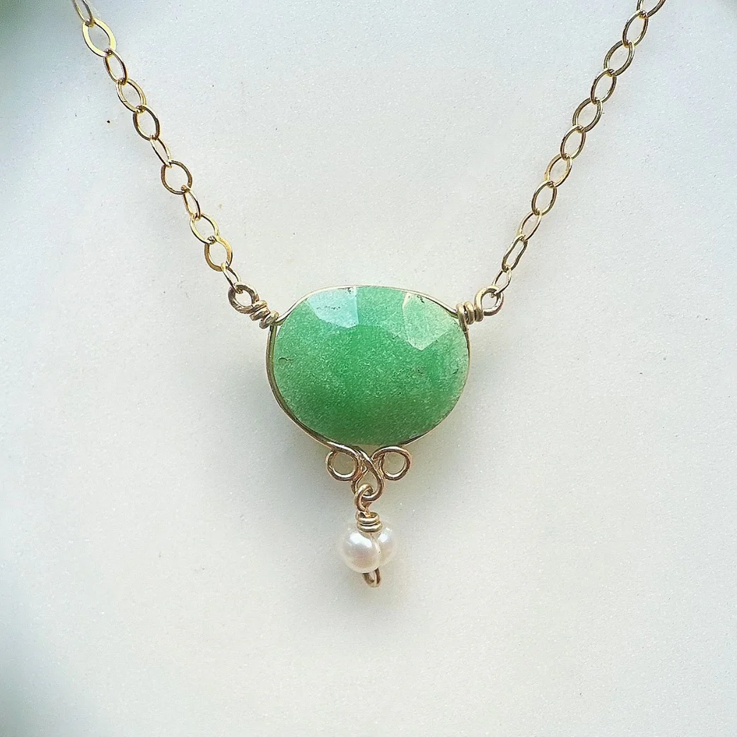 El Collar de Crisoprasa con Perla de Macadero es una pieza única que mezcla el encanto de la crisoprasa con la elegancia clásica de la perla. La crisoprasa, con su color verde suave y translúcido, se conoce por sus propiedades de equilibrio emocional y optimismo, mientras que la perla aporta un toque de sofisticación y pureza. Este collar fusiona lo mejor de ambos elementos en un diseño armonioso y moderno, perfecto para quienes buscan una joya distintiva que combine frescura y elegancia natural.